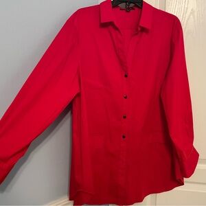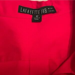 Size 12 Lafayette 148 New York Michelle Long Sleeve Top in like new condition. 23” pit to pit before stretch. Tailored, luxury style, polished with wrinkle-free fabric in an Italian stretch cotton blend and with subtle pockets on front. Gorgeous red color. Pictures of white version of this blouse are included to show detail. This is one of those pieces that will last a lifetime!