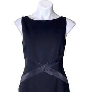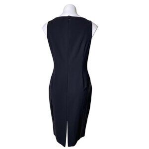 Lafayette 148 New York NWT $548 Black Midi Sheath Dress W/Leather Detail Size 4