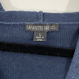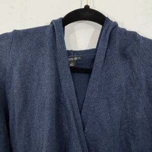 Lafayette 148 New York Navy Blue Linen Blend Hooded Wrap Sweater Size Large