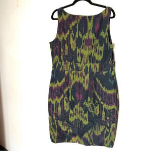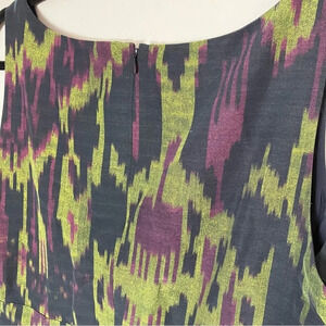 Flattering sleeveless shift dress in subtle okay print. Excellent condition.
