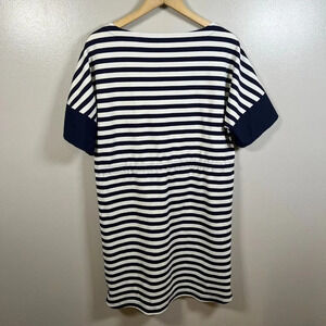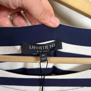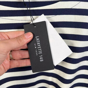 Lafayette 148 New York Navy and White Striped Midi Dress
