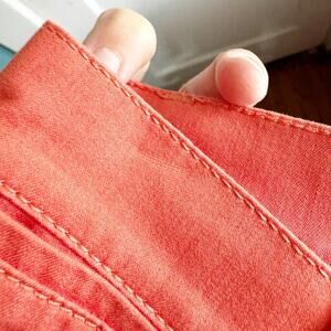 Lafayette 148 New York Orange Mercer Skinny Ankle Pants Slacks Peach Rose Size 6 {Six}. The color looks like a mix of orange and peach {please note that color is subjective}. Designer color name: Peach Rose. Good, preowned condition. Some wrinkling behind knees. Faint marks close to left knee. Hard to get on camera. See last pic. Belt loops. Front and back pockets. Bright pop of color. Mid-rise. 74% cotton, 23% polyamide, 3% spandex. Machine wash. Hang to dry.