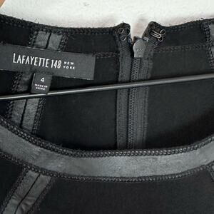 Lafayette 148 New York Overlook Black Leather Trim Dress Career Business size 4