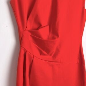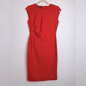 Lafayette 148 New York Red Orange Cape Sleeve Ruched Side Sheath Dress Size 4