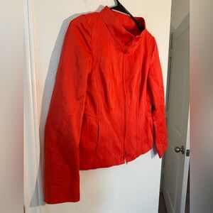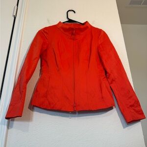 Lafayette 148 New York Red Orange Zip Front Cotton Blend Jacket Womens Size 0