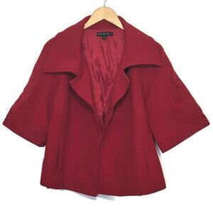 Lafayette 148 New York Red Swing Coat Virgin Wool 3/4 Sleeve Short Size 12