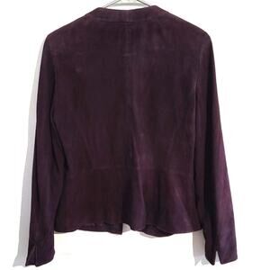 Lafayette 148 New York Ruffle Front Suede Leather Evening Jacket in Blackberry (Deep Purple) - it's a size 6 and in good pre-owned condition. $798 MSRP
