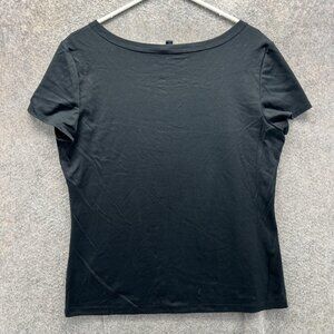 Lafayette 148 New York Shirt Womens XL Black Scoop Neck Stretch Tee Top