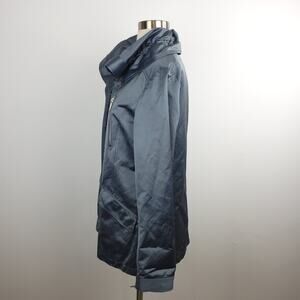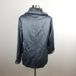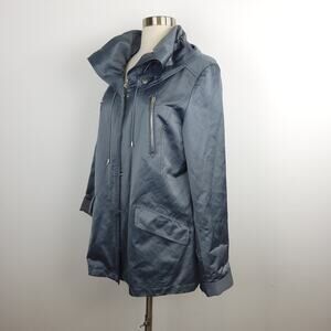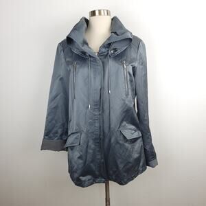 Lafayette 148 New York Silver Metallic Zip Up Jacket Scrunch Hood Size 8