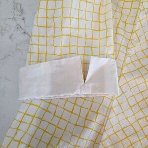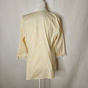 Travel, Career, Business, Office, Professional, workwear, casual wear, office attire, stylish top, professional wear, Lafayette 148 shirt, women's button-up, yellow and white, collared shirt, checkered pattern, cotton blend, professional shirt, office blouse, casual top, stylish women's top