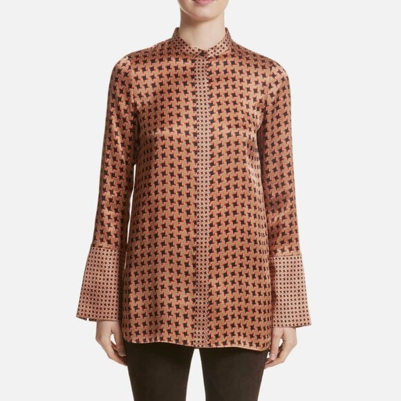 Desra Highgate Houndstooth Herringbone Silk Tunic Top