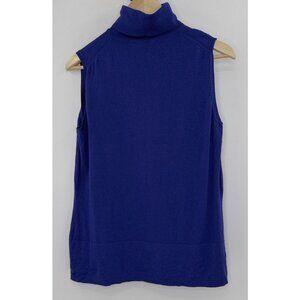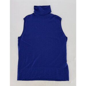 Lafayette 148 New York Sleeveless Blue 100% Super 120’s Wool Turtleneck Sz L