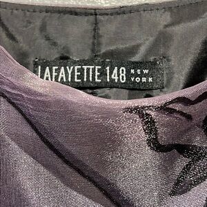 Elevate your ensemble with our Lafayette 148 New York Strapless Draped Purple Silk Blend Chiffon Dress, exuding timeless elegance. Crafted from luxurious silk blend chiffon, its graceful draping and stunning purple hue make it perfect for formal events, weddings, or cocktail parties. Pair with delicate jewelry and strappy heels for an unforgettable look."