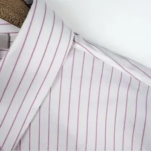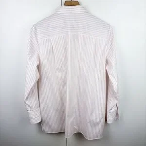 Lafayette 148 New York Striped Button Down Cotton Shirt Pink White Poplin Small