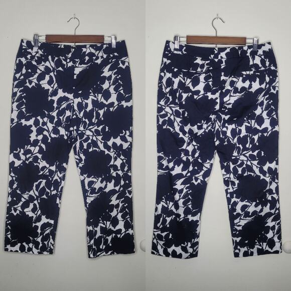 Lafayette 148 New York Sz 10 Midnight Blue Floral Capri Pants Work Office Casual