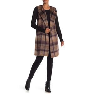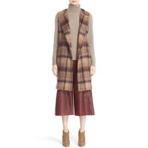 Lafayette 148 New York Tai Pavillion Brushed Plaid Alpaca Longline Vest S