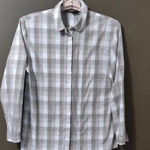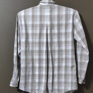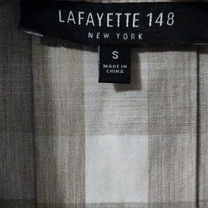 Lafayette 148 New York Taupe and White Check Long Sleeve Button Up SIZE …