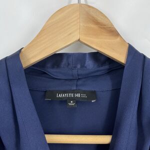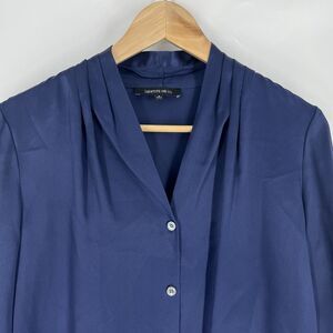 Lafayette 148 New York Top Size 6 Blue Silk Satin Blouse Button Up Career Pleat