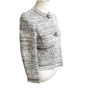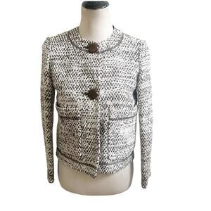 Lafayette 148 New York Tweed 2 Button Jacket Size Small Brown Ivory Big Pockets