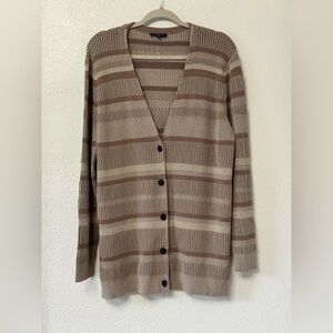 Lafayette 148 New York V-neck Ribbed Button Front Cardigan, Tan Size XL