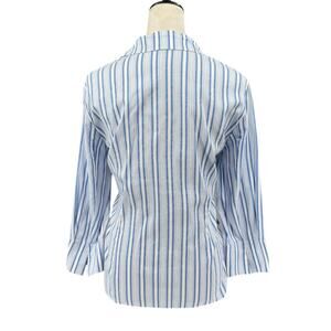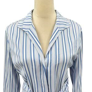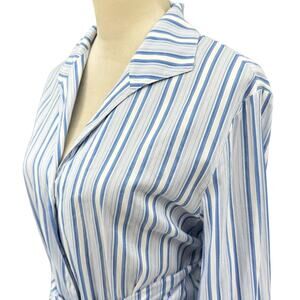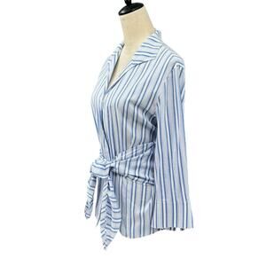 Lafayette 148 New York White & Blue Stripe Silk Blend Button Front Wrap Tie Top