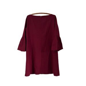 Lafayette 148 New York Wine Red Wool Blend Ruffle Sleeve Shift Dress Size Large