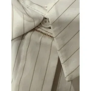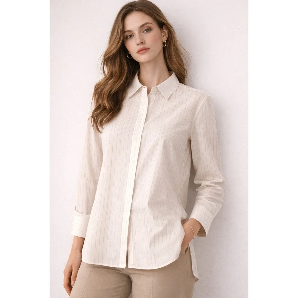 Lafayette 148 New York Women Tunic Shirt S White Gold Pinstripe Button