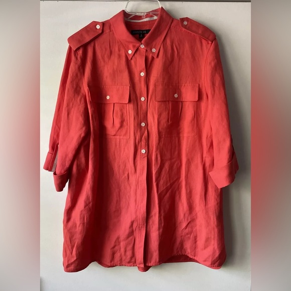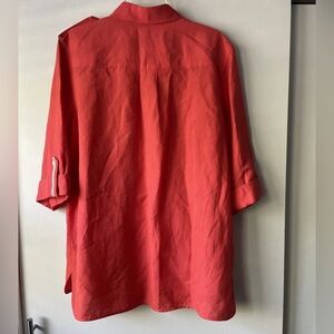 Lafayette 148 New York Womens 10Linen Rayon Blend Button Down Shirt Red Orange