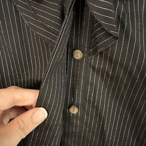 Lafayette 148 New York Women’s Black Pinstripe Ruffle V-Neck Blouse Sz 16 GUC