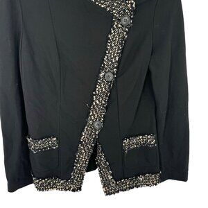 Lafayette 148 New York Womens Blazer jacket ponte knit Size 4 Black Tweed trim