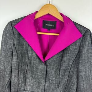 Lafayette 148 New York Womens Grey and Pink Snap Closure Blazer Sz 2 | Office