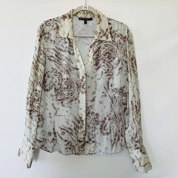 Lafayette 148 New York Womens Light Mint Paisley 100% Silk Button Up Shirt Size 14 Lined