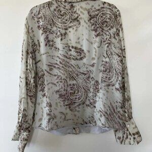 Lafayette 148 New York Womens Light Mint Paisley 100% Silk Button Up Shirt14
