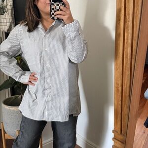 Keywords: Lafayette 148 New York, Women's Shirt, Medium, Striped, Linen Blend, Button Down, Long Sleeve, Casual, Workwear, Chic, Classic, Professional, Designer