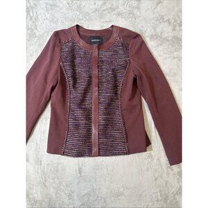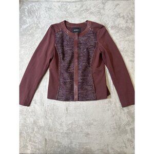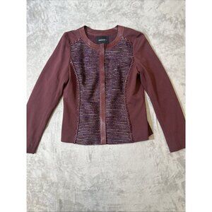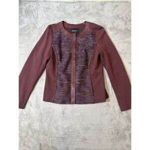 Lafayette 148 New York Women’s Size 12 Jacket Burgundy Tweed Leather Trim Blazer
