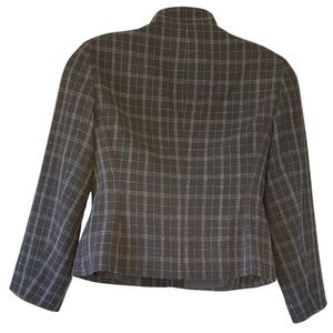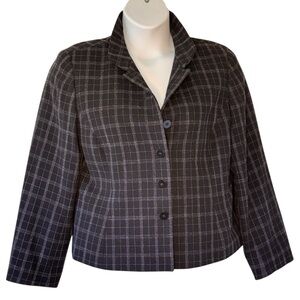 Lafayette 148 New York Wool Blazer Black and Grey Plaid Fitted Career Women's 12