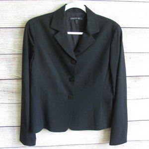 Lafayette 148 black long sleeve jacket/blazer. Fully lined, collared, 3 front button closure, darted in the front & back for a nice flattering fit.