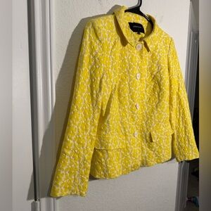 Lafayette 148 New York Yellow Floral Embroidered Blazer Womens Size 2