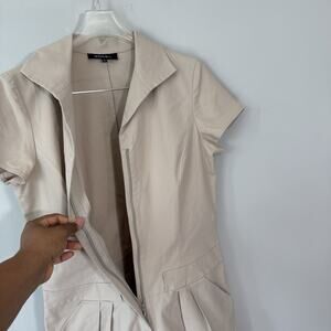 Lafayette 148 New York Zip Front Midi Dress Beige Size 8 Career Office Work stretch shortsleeves