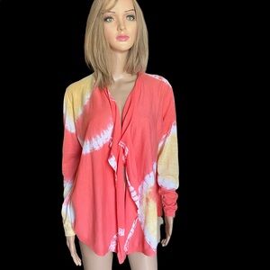 Lafayette 148 New York open front cardigan orange/white/yellow blouse size M