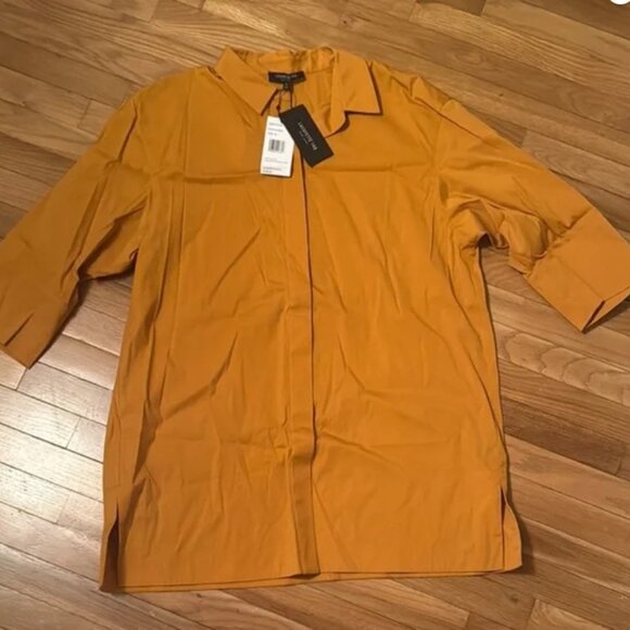 Lafayette 148 New York tunic button-front blouse in a mustard yellow
