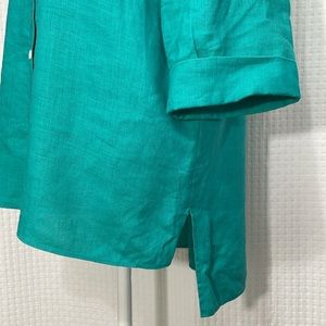 Lafayette 148 New York women's teal green long sleeve linen button up tunic shirt.