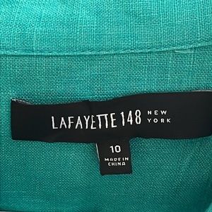 Lafayette 148 New York women's Size 10 teal green linen button up shirt.