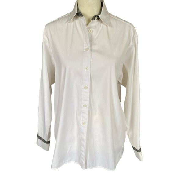 Lafayette 148 New York women's size P cream button down collared blouse sequin