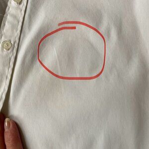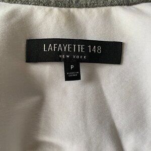 Women's Lafayette 148 New York cream color button down collared long sleeve top, size P - please see measurements below. This has sequin around the collar and sleeves. "Note: There is a faint discoloring or stain in the center near the buttons - please see last picture circled in red. Other than this it is in excellent condition. Smoke free pet free home. Quick shipper!