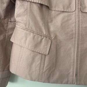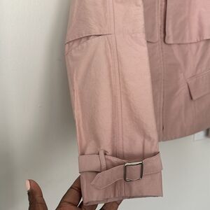 Stylish blush jacket with front zip, pockets in VGUC.