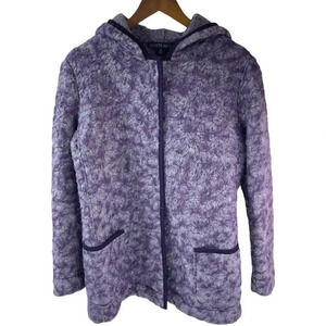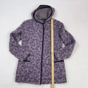Lafayette 148 New York Purple soft spun wool hood snap lightweight jacket Size M