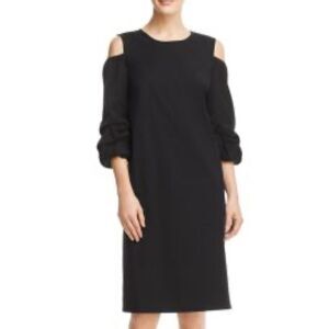 Lafayette 148 New York Willa Black Cold Shoulder Shift Dress| Size L