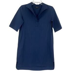 Lafayette 148 NY Blue Tunic Dress Collared Popover Shift Minimalist Luxury