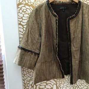Lafayette 148 Open Front Blazer Brown Fringe